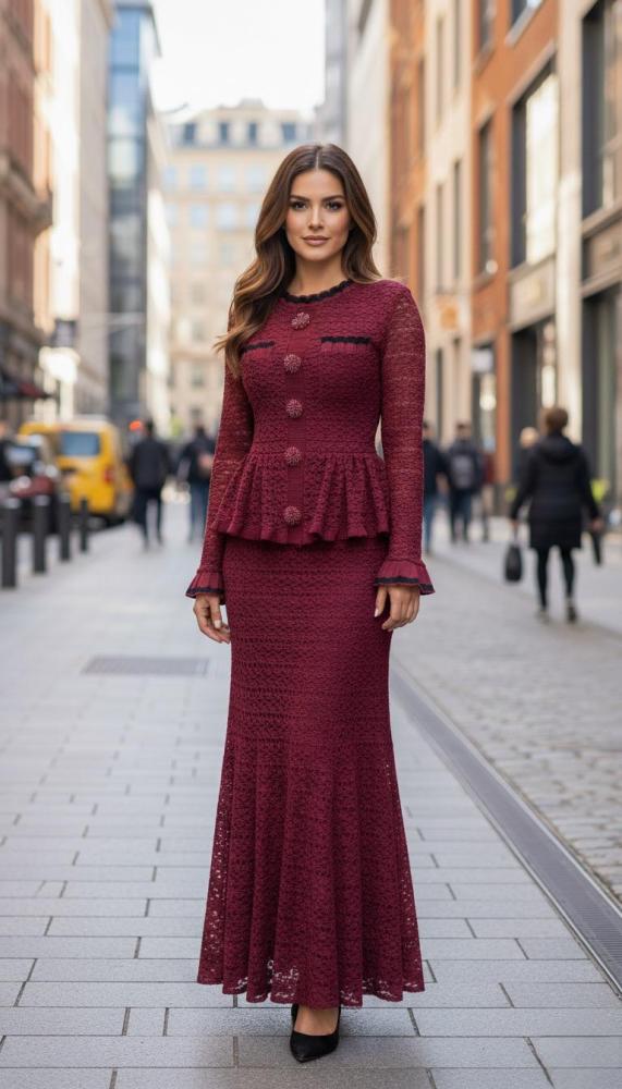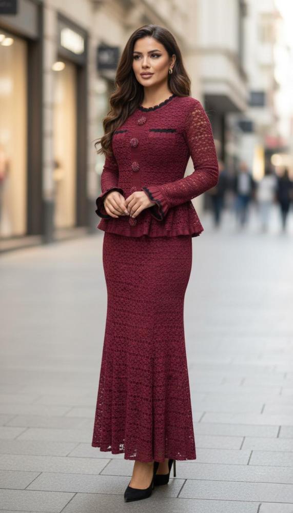 فستان عنابي كروشيه ماكسي
