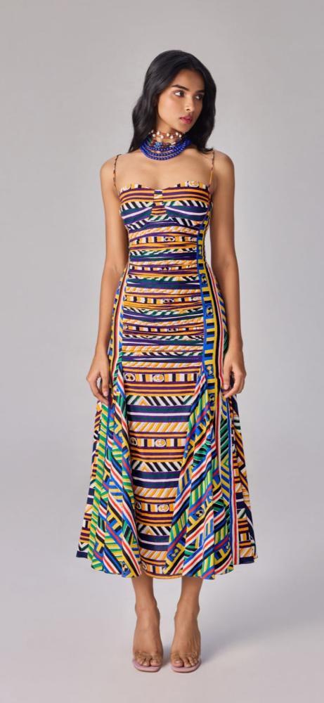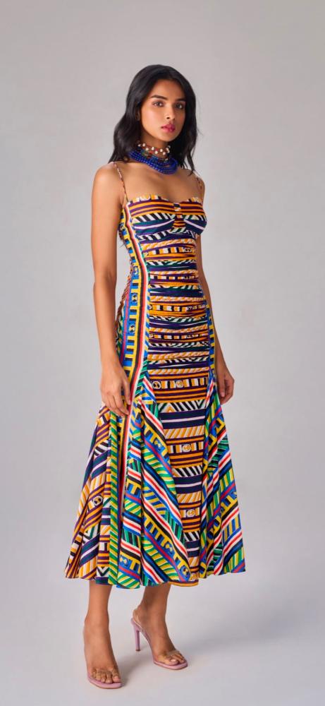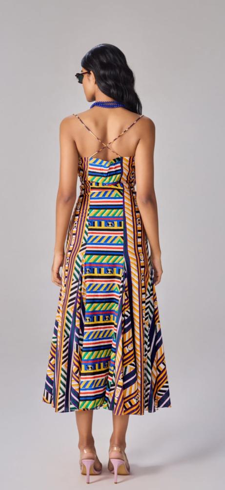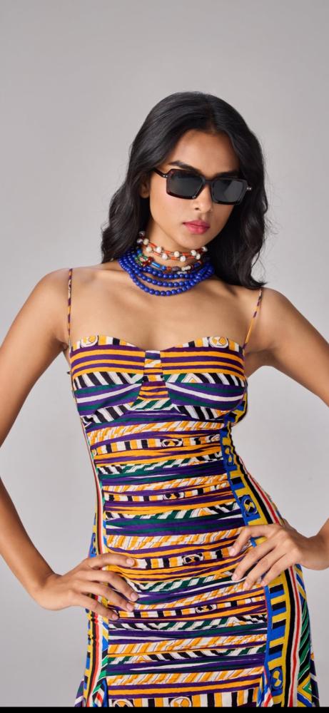 فستان قفطان بطبعة زهور مع طيات يدوية صغيرة مع رباط وطول وأكمام قابلة للتعديل